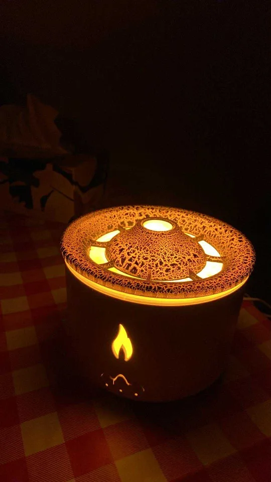 Humidifica suavemente el ambiente mientras crea un efecto visual de volcán o llama muy aesthetic.